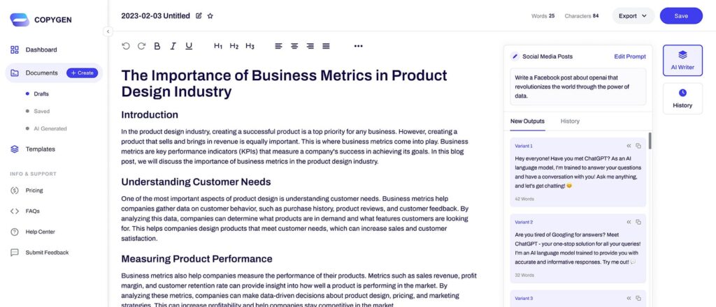 BlyroAI helps you generate blogs, ads, emails, landing pages, and product descriptions in seconds. Improve existing content or create new copy with a consistent and professional tone.